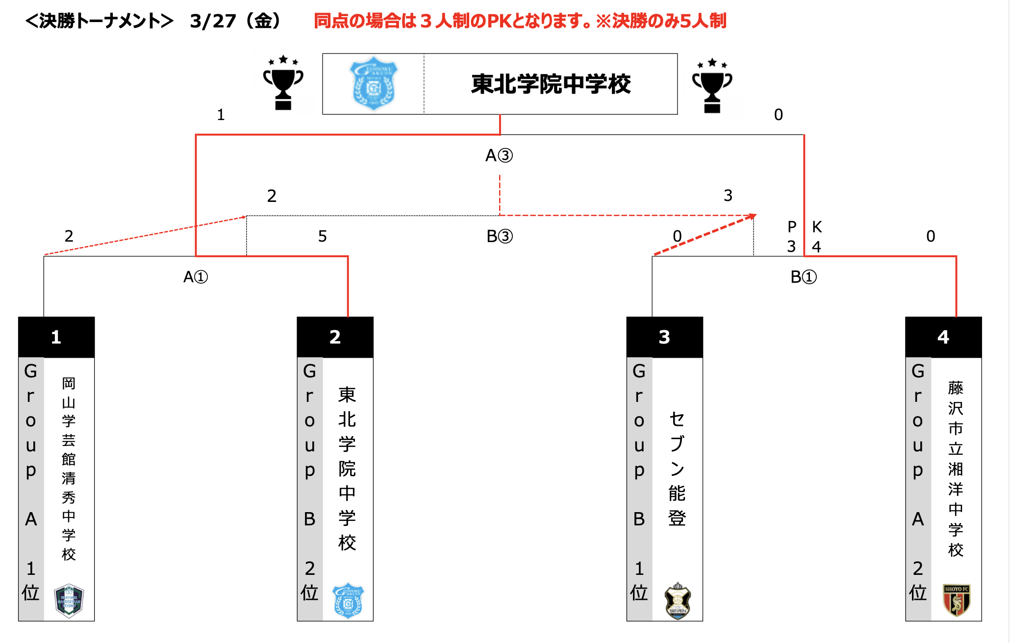 | 東海大相模 | 0 - 5(●) | 1 - 0(○) | 1 - 3(●) |