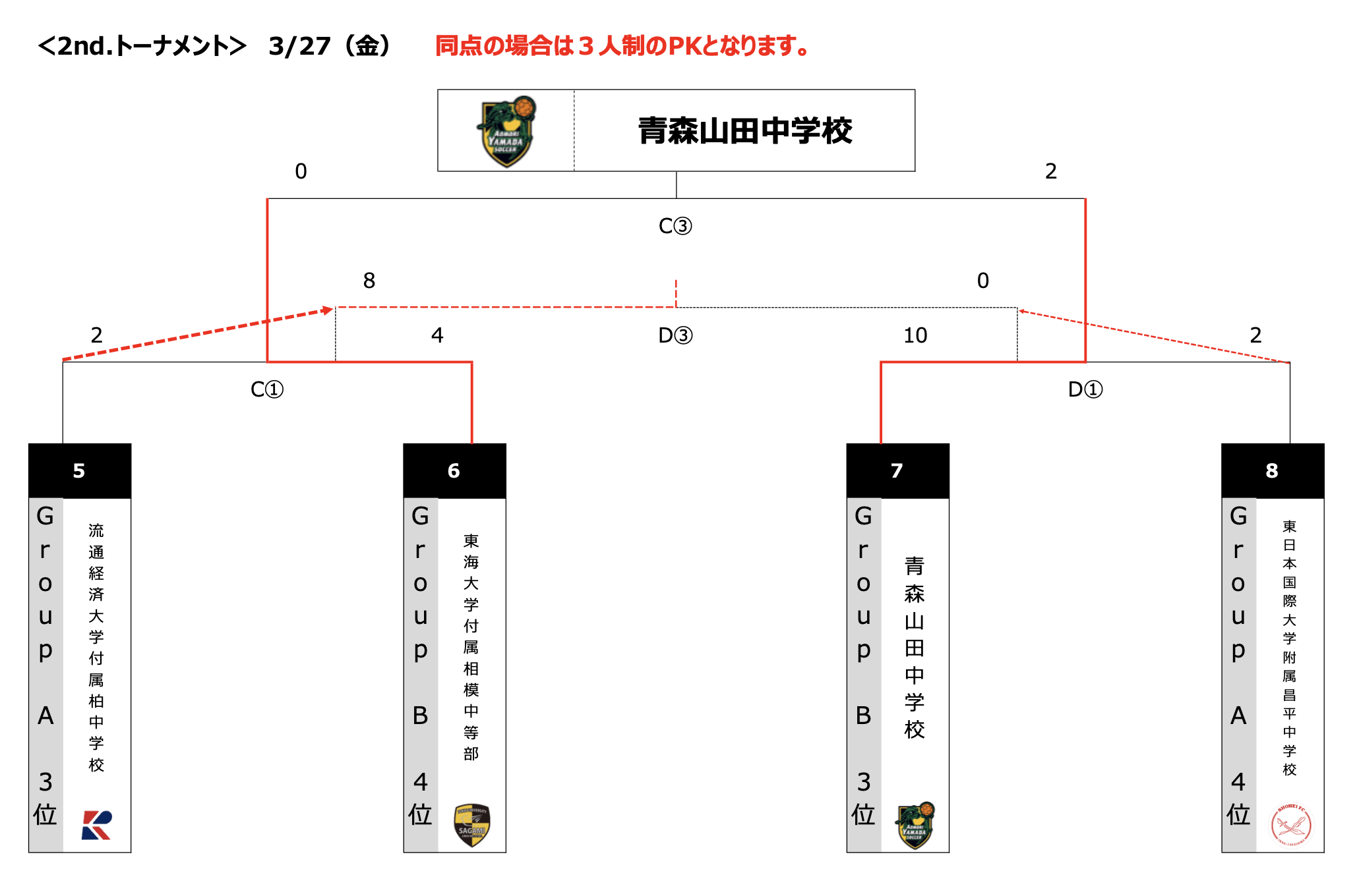 | 青森山田 | 0 - 3(●) | 2 - 2(△) | 3 - 1(○) | |